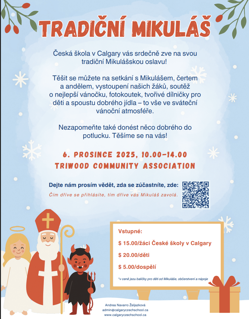 Tradiční Mikulášská akce České školy v Calgary je tady! Registrace je již spuštěna zde: https://forms.gle/BztQCvNkk6GRbucy8