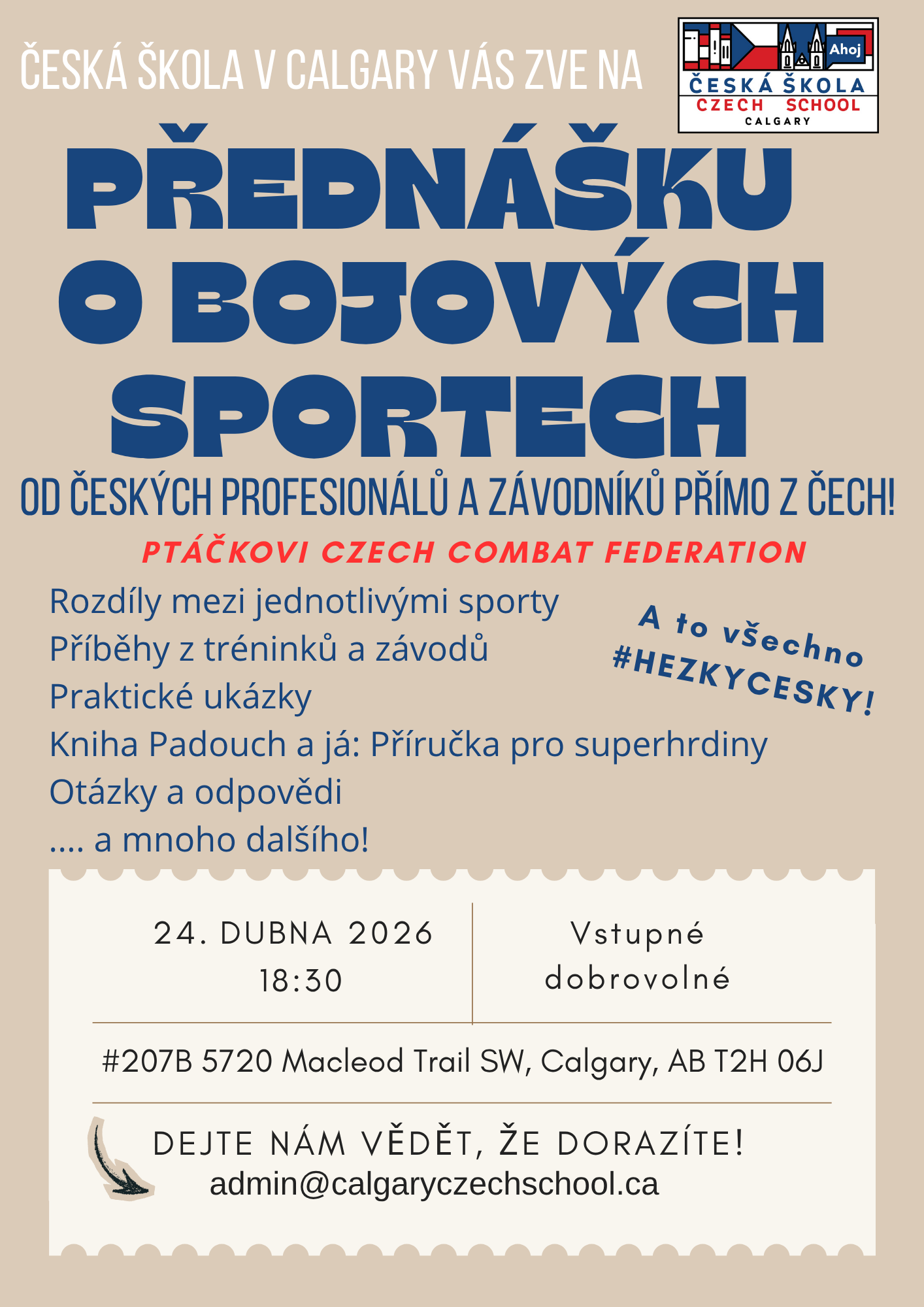 Tradiční Velikonoční oslava České školy v Calgary proběhne již 11. dubna 2026. Prosíme o registraci zde: https://forms.gle/ZZWoS7ccMn1ZQc6H7